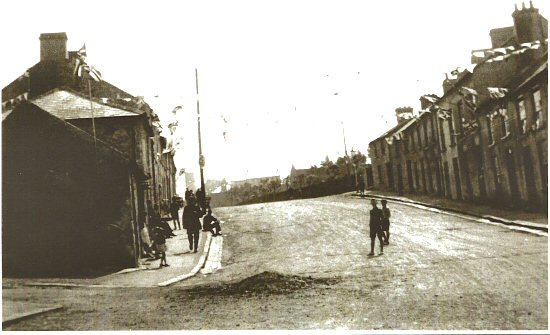 In the foreground, Eddie McMillen of Derrybeg Drive is taking his spaniel for a walk.